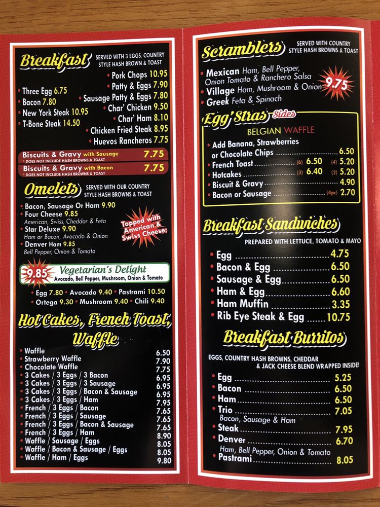Introducing the menu at Mega Tom’s Burgers in Murrieta, CA offers a delightful selection of Greek-inspired dishes, hearty burgers, and classic breakfast options. With a wide range of breakfast plates, omelets, and scramblers, Mega Tom’s caters to various tastes and preferences. For those looking for a filling breakfast, options like the NY Steak & Eggs and Huevos Rancheros are popular choices. The menu also includes a variety of omelets, such as the Vegetarian Omelet and Bacon Star Deluxe Omelet, each served with hash browns and toast. Customers praise the flavorful and generous portions at Mega Tom’s, making it a go-to spot for a satisfying meal. The casual atmosphere, friendly staff, and nostalgic diner vibes add to the overall dining experience at this beloved establishment.