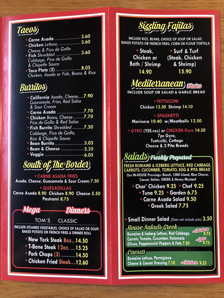 Mega Tom’s Burgers Menu (Update 2025)